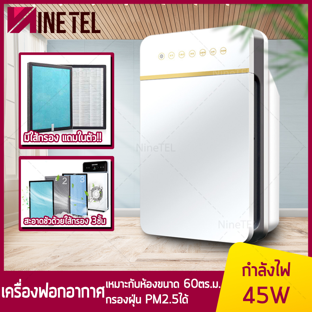 เครื่องฟอกอากาศ Air Purifier สำหรับห้อง 30-60 ตร.ม. กรองฝุ่น ควัน สารก่อภูมิแพ้ และไรฝุ่น จอภาพแบบสัมผัส แถมฟรี แผ่นกรองอากาศ ในตัวเครื่อง NineTel ซื้อออนไลน์ได้อย่างมั่นใจทางแอพและเว็บไซด์ จัดส่งทั่วไทย มีบริการเก็บเงินปลายทาง