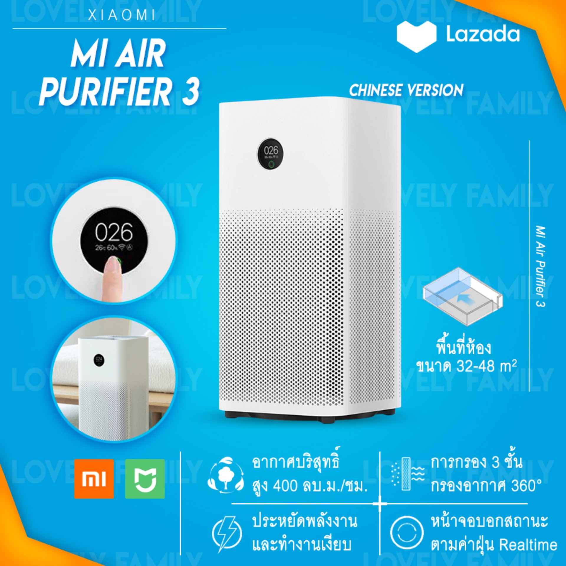 - คุณสมบัติ - Specifications:? ยี่ห้อ: Xiaomi? รุ่น: 3 ปี2019? สี: สีขาว? วัสดุ: ABS? ประเภท: อากาศสดชื่นและฟอกอากาศ? น้ำหนักสินค้า: 4.8000 กก.? น้ำหนักแพคเกจ: 6.5000 กก.? ขนาดสินค้า (ยาว x กว้าง x สูง): 24.00 x 24.00 x 52.00 ซม.? แพคเกจขนาด (ยาว x กว้าง x สูง): 30.00 x 30.00 x 63.00 ซม.? สามารถฟอกอากาศบริสุทธิ์ได้ 400 ลูกบาศก์เมตร / ชั่วโมง? CADR (Clena Air Delivery Rate) สามารถส่งอากาศบริสุทธิ์ได้ถึง 6660 ลิตร ต่อ นาที? จอสัมผัส OLED Touch Display? ความแม่นยำสูงของเซ็นเซอร์ Micro-scale Particle Laser ที่ไวต่อการวัดคุณภาพอากาศแบบ Real-time? เชื่อมต่อแอพ Mi Home และ AI เสียงควบคุมอัจฉริยะ ไม่ว่าอยู่ที่ไหนก็สามารถควบคุมผ่านแอพได้ และตั้งค่าระบบอัตโนมัติได้ สามารถเชื่อมการทำงานกับอุปกรณ์Xiaomi อื่นๆ ในบ้านได้? มีการกรอง 3 ชั้น กำจัดฝุ่นPM2.5 ได้อย่างมีประสิทธิภาพ? ประสิทธิภาพที่ดีขึ้นและเสียงรบกวนต่ำขึ้น? พื้นที่ใช้งานได้: 28 - 48 ตรม? แรงดันไฟฟ้า: 100 - 240V? กำลังไฟสูงสุด: 38Wอุปกรณ์ในกล่อง:1 x เครื่องฟอกอากาศ1 x ไส้กรอง1 x Power Adapter (ปลั๊ก 2 หัว สามารถใช้งานไทยได้เลย)1 x คู่มือการใช้การจัดส่ง?ทางร้านจัดส่งสินค้า วันจันทร์ - วันเสาร์ ( ตัดรอบจัดส่งสินค้า 11.00 น. ของทุกวัน สั่งของเข้ามาก่อนเวลา จัดส่งออกจากร้านภายในวันนั้นเลยค่ะ ) *ยกเว้นวันหยุดนักขัตฤกษ์ ทางร้านจะดำเนินการส่งให้ในวันถัดไปไม่รวมวันอาทิตย์?โดยปกติสินค้าที่จัดส่งออกจากร้านแล้ว มีระยะเวลาจัดส่งภายใน กรุงเทพฯ ประมาณ 1-2 วันทำการ ต่างจังหวัด ประมาณ 2-3 วันทำการ (ตรวจสอบ Tracking Number ได้ภายในระบบค่ะ)?กรณีที่สินค้าเกิดการเสียหายจากการจัดส่ง ลูกค้าสามารถแจ้งข้อมูลให้กับทางร้านได้ทันทีเพื่อดำเนินการในขั้นตอนต่อไป (ควรตรวจสอบสินค้าทันทีที่ได้รับค่ะ)เงื่อนไขการรับประกันสินค้า?สินค้าที่มีปัญหา สามารถเคลมหรือเปลี่ยนตัวใหม่ได้ในระยะเวลา 7 วัน สามารถส่งมาซ่อมได้ในระยะเวลา 1 เดือน (นับวันที่ลูกค้าได้รับ เป็นวันที่ 1)?ทุกๆการรับประกันสินค้า ลูกค้าต้องเก็บกล่องสินค้าไว้ในสภาพสมบูรณ์ เพื่อใช้เป็นหลักฐานในการรับประกัน?การรับประกันจะไม่ครอบคลุมในกรณีสินค้ามีการแตกหักเสียหายจากการใช้งานผิดประเภทหรือเกิดปัญหาจากการใช้งานผิดวิธี ชื้นหรือเปียกน้ำ การดัดแปลงแก้ไข เปลี่ยนสภาพของสินค้า