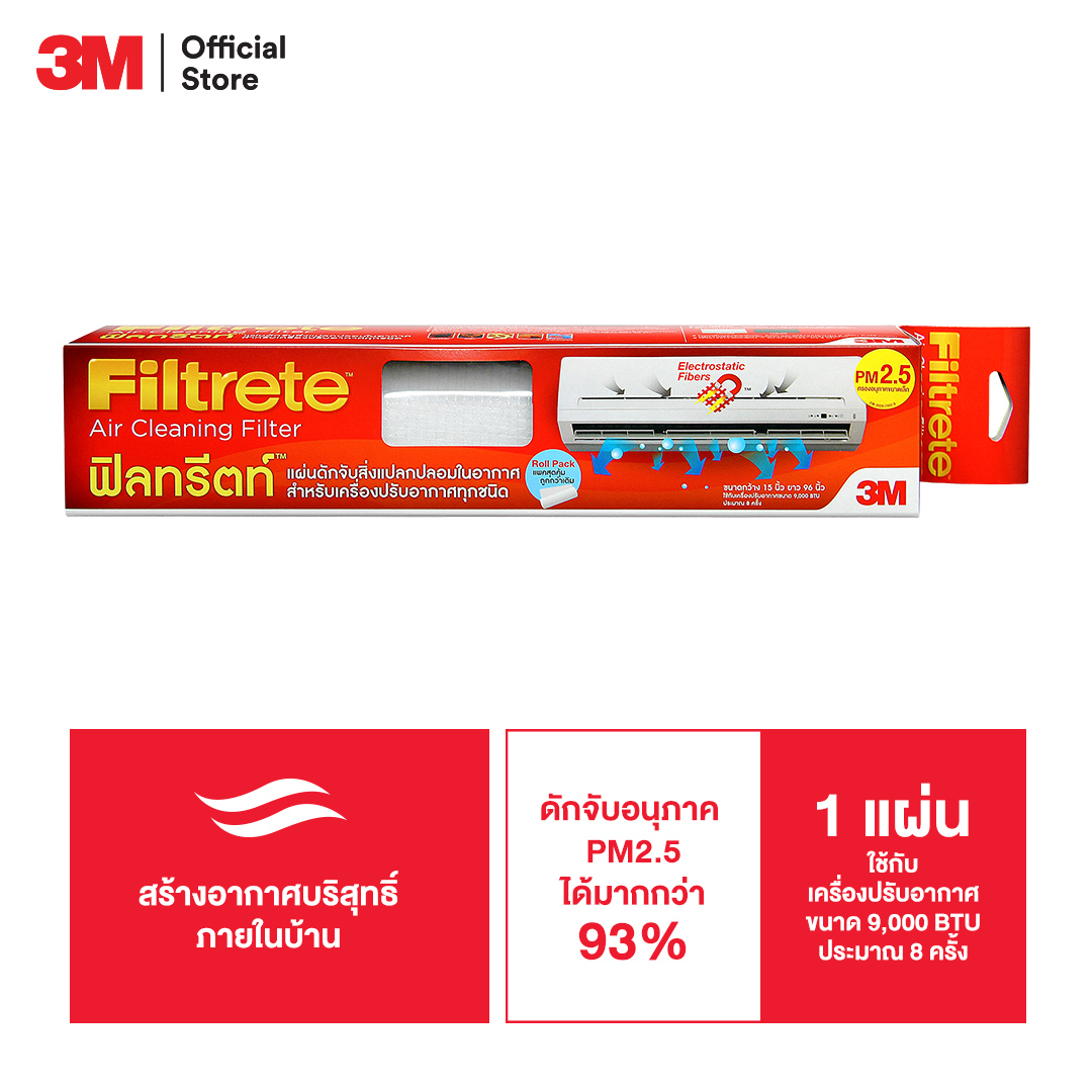 3M Filtrete? Roll 15 X96“ แผ่นดักจับสิ่งแปลกปลอมในอากาศ ฟิลทรีตท์ 15 x 96” คลิกที่นี่ >>