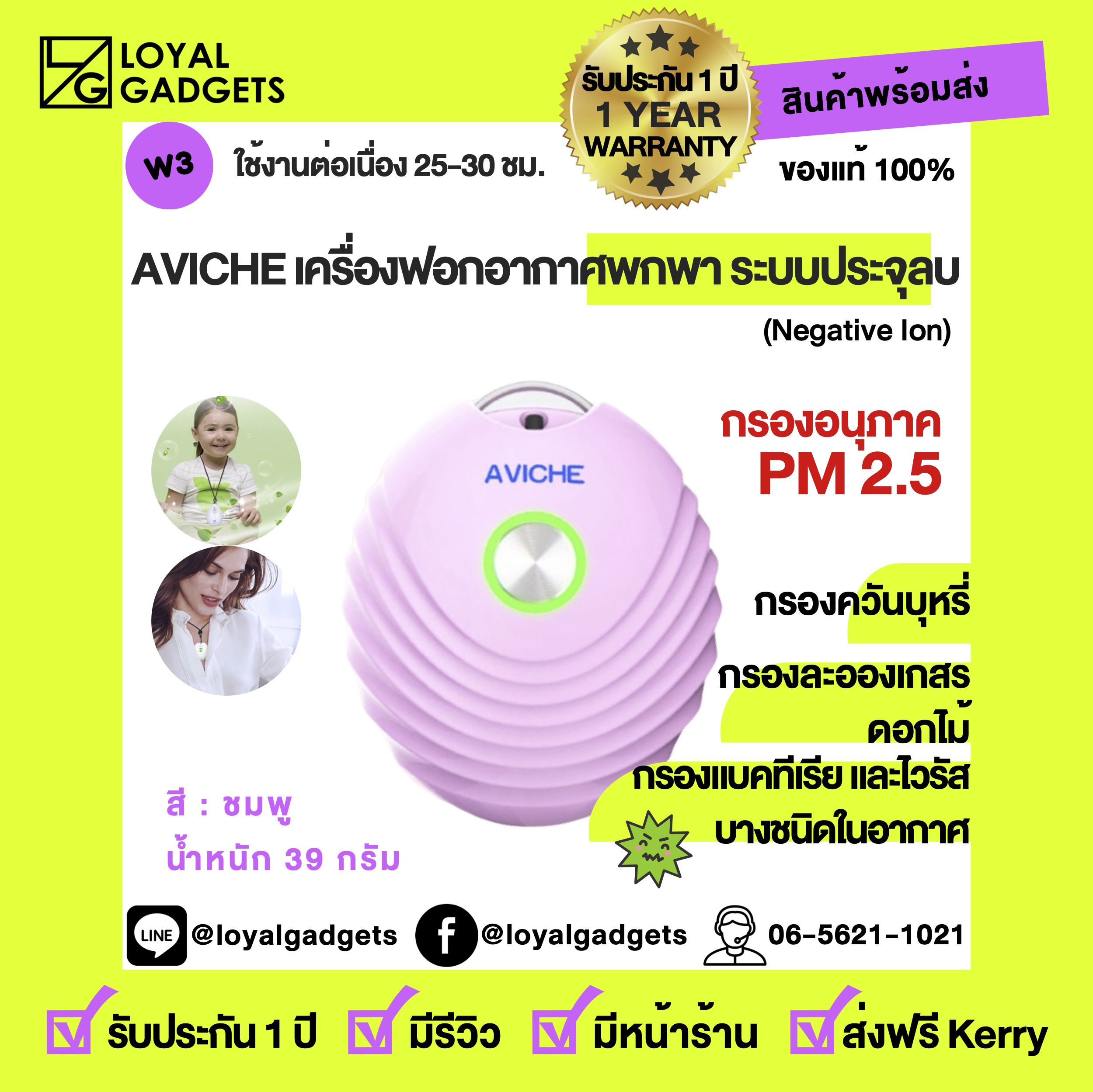 - LOYAL GADGETS - เครื่องฟอกอากาศรุ่น W3สอบถามข้อมูลรุ่นต่างๆ เเวะเข้ามาดูสินค้าต่างๆได้ที่พระราม 3หรือ แอด LINE @LOYALGADGETS มี@ นะครับ??สอบถามเพิ่มเติมได้ตลอด24ชม.065-6211021AVICHE เครื่องฟอกอากาศพกพา ระบบประจุลบ(Negative Ion), มีสายสร้อยคล้องคอรุ่น M1 สามารถปล่อยปจุลบได้มากถึง 20 ล้านหน่วย หรือ วัดค่าได้ 8 ล้านหน่วยในระยะ 1 ตารางเมตรสามารถช่วยเรื่อง ภูมิเเพ้ เเละเเพ้อากาศ ได้ครับ?กรองอนุภาค PM 2.5?กรองควันบุหรี่?กรองละอองเกสรดอกไม้?กรองแบคทีเรีย และไวรัสบางชนิดในอากาศได้สินค้ามีรับประกัน 1 ทุกชิ้น