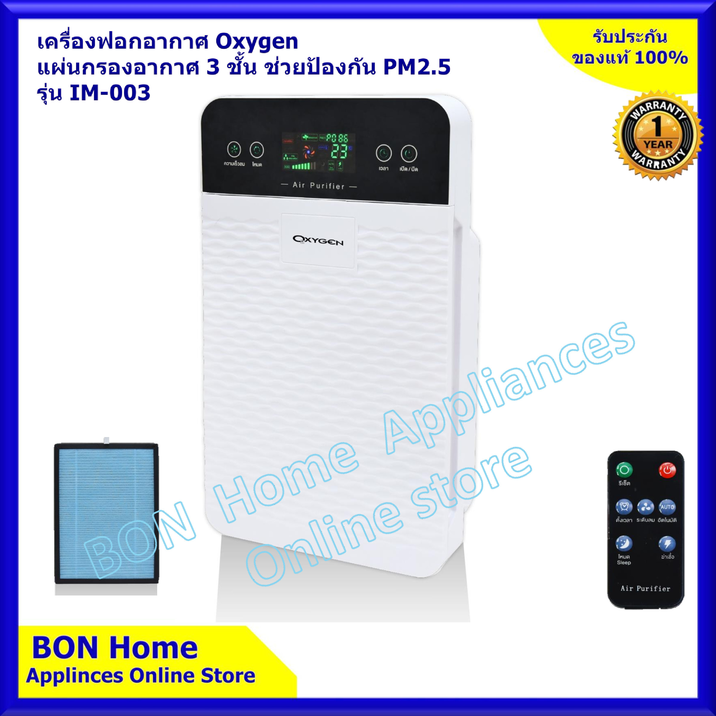ดูรีวิว Oxygen เครื่องฟอกอากาศ สีขาว รุ่น IM-003 แผ่นกรองอากาศ 3 ชั้น ช่วยป้องกัน PM2.5 เรามีข้อมูลมารีวิวให้คุณ